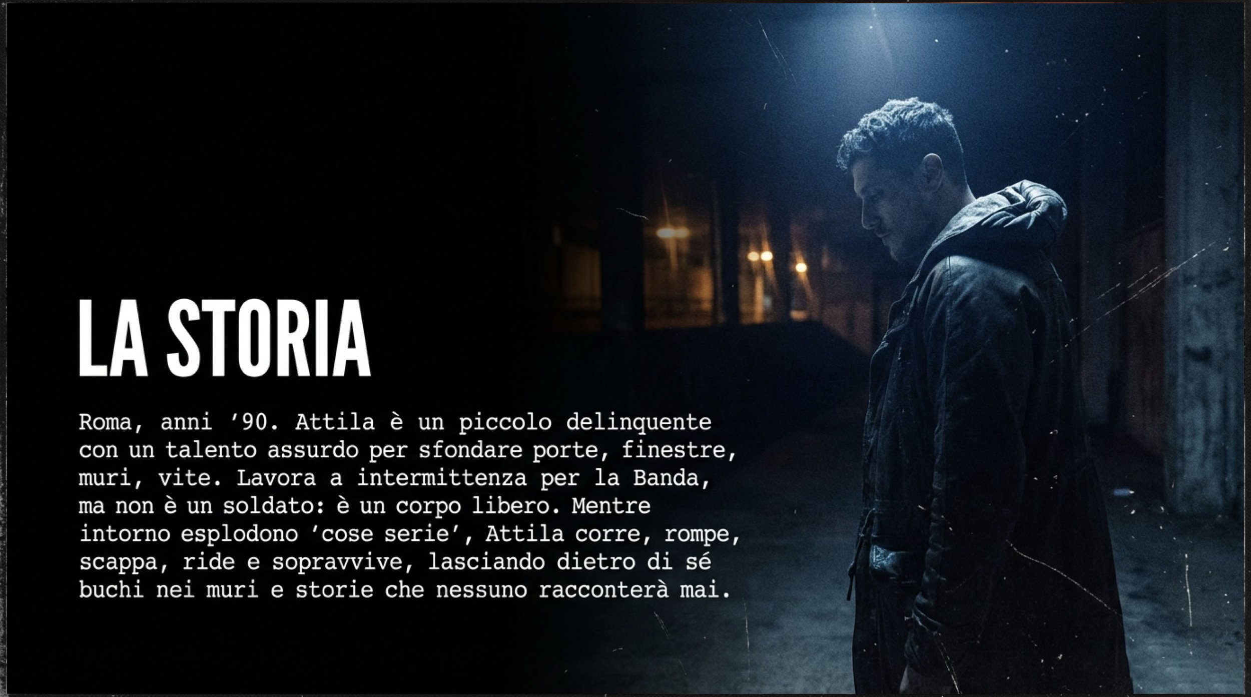 Roma, anni ’90. La città è attraversata da grandi trame: criminalità, politica, potere. Per Attila sono solo traffico. E lui attraversa la strada senza guardare.